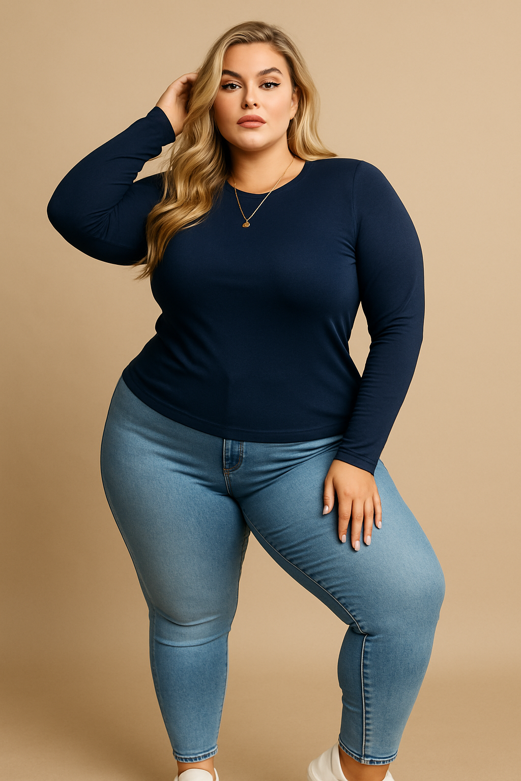 Blusa Classic Manga Longa Marinho