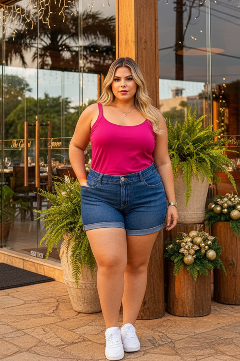 Medidas da Modelo: Altura 1,72m / Busto: 115cm/ Cintura: 95cm/ Quadril: 133cm.